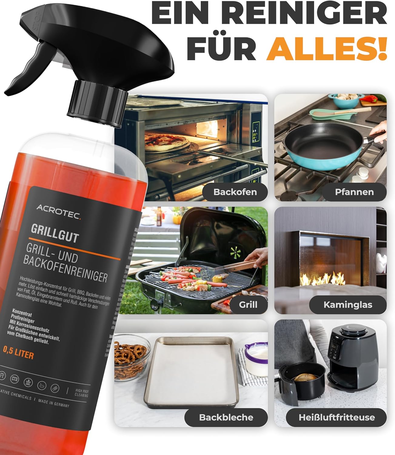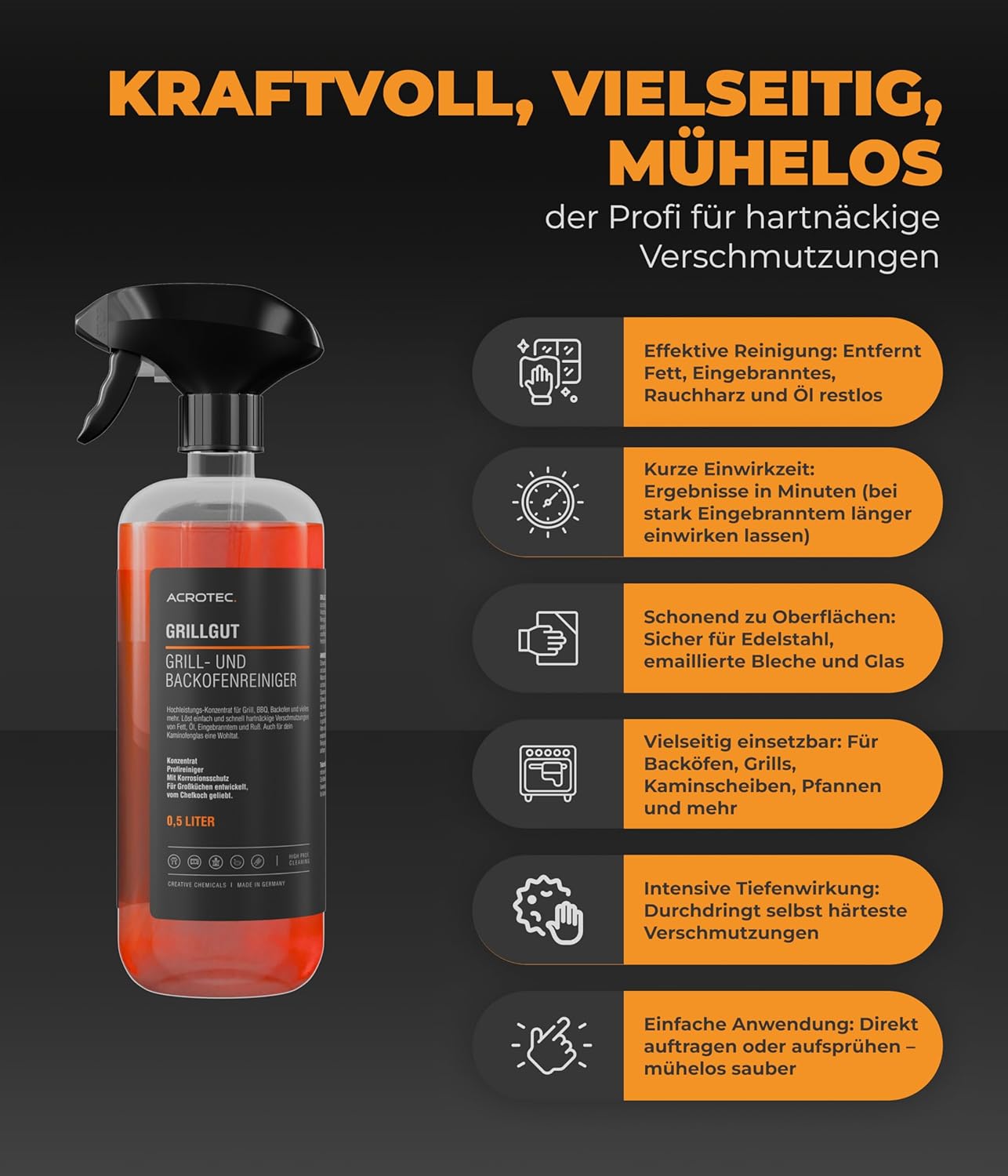 Backofenreiniger GRILLGUT – Extra starker Reiniger für Grill, Backofen & Kochflächen